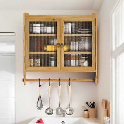 Boho Wall Mounted Storage Cabinet with Double Doors & Adjustable Shelves