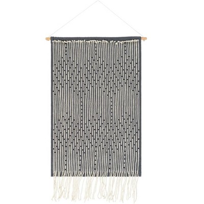 Slickblue 18"x28" Handmade Textured Bohemian Wall Art - Cotton Tapestry in Cream and Charcoal, Easy-Hanging Loop