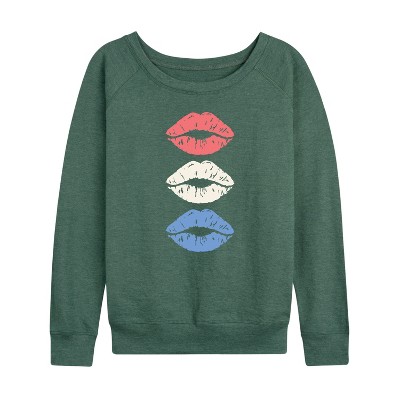 Women's - Instant Message - Red White Blue Lips Lightweight French Terry Wide Neck Long Sleeve Graphic Shirt