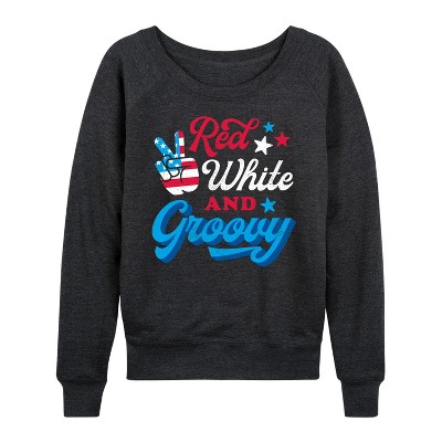 Women's - Instant Message - Red White And Groovy Lightweight French Terry Wide Neck Long Sleeve Graphic Shirt