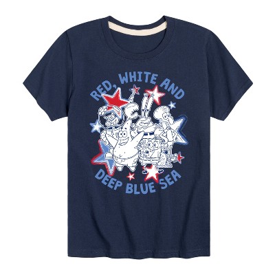 Boys' - SpongeBob SquarePants - Red, White and Deep Blue Sea Short Sleeve Graphic T-Shirt