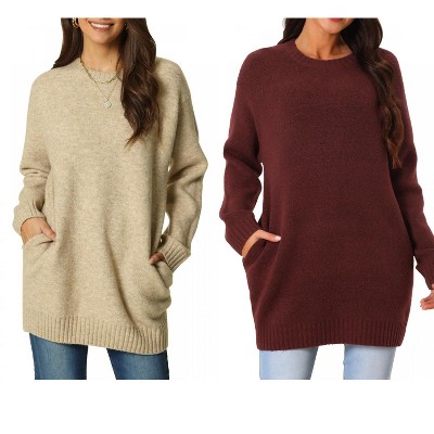 INSPIRE CHIC Women's Fall Winter Round Neck Long Sleeve Casual Tunic Sweater with Pockets 2 Packs