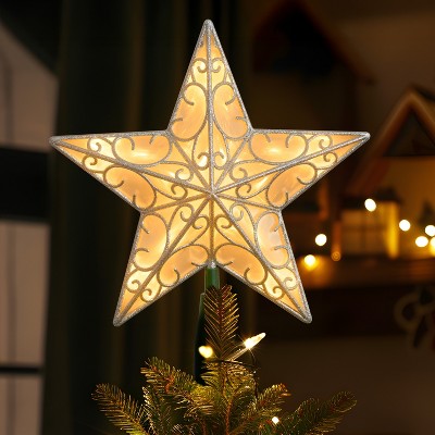 10in LED Lit Dewdrop Glitter Metal Open Star Christmas Tree Topper - Wondershop™