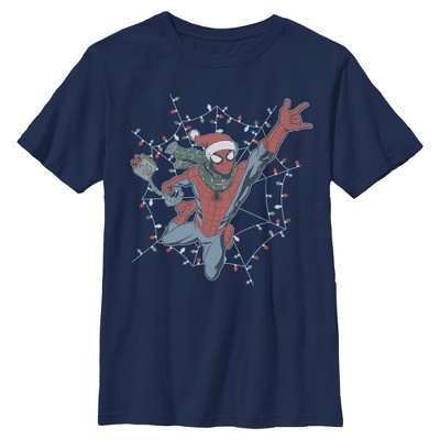 Boys Marvel Christmas Lights Web Swing T Shirt