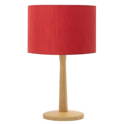 Natural Wood Table Lamp with Linen Shade and Adjustable Dimmer Switch