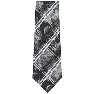 TheDapperTie Men's Black And White Checks Necktie with Hanky