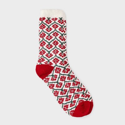 Women's Floral Double Lined Cozy Crew Socks - Auden™ Ivory/Red/Green 4-10