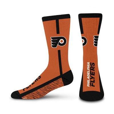 NHL Philadelphia Flyers Rise Up Crew Socks - Large: Cushioned Heel & Toe, Knit Fabric
