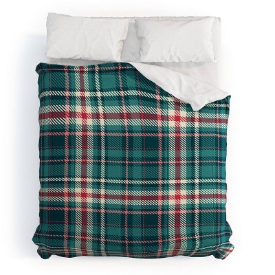 King Avenie Winter Plaid 1 Polyester Comforter + Pillow Shams Blue - Deny Designs: Cozy Abstract Bedding Set, Machine Washable