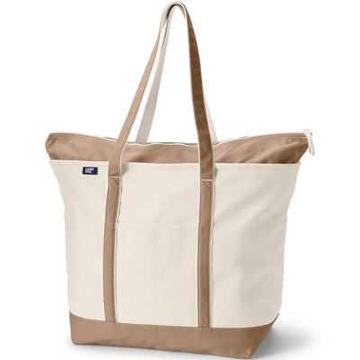 Lands' End Zip Top Long Handle Canvas Tote Bag