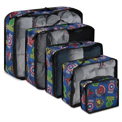 Marvel Comics Packing Cube Set - Spiderman, Ironman, Captain America, Hulk - 5 Piece Packing Cube Travel Essential - Luggage Organizer Set