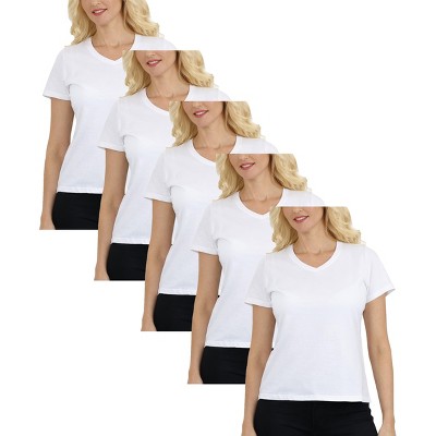 Galaxy Divatee Women’s Relaxed Fit V-Neck Short Sleeve T-Shirt-5 Pack