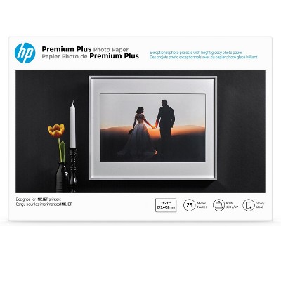 HP Premium Plus Photo Paper, Glossy, 80 lb, 11 x 17 in. (279 x 432 mm), 25 sheets CV065A