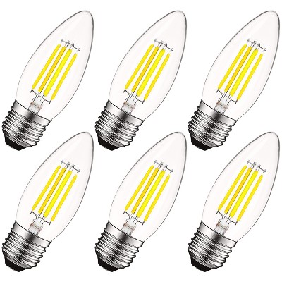 Luxrite 5W Vintage Candelabra LED Bulbs 60W Equivalent, 550 Lumens, 5000K Bright White, Dimmable, E26 Medium Base, Torpedo Tip 6 Pack