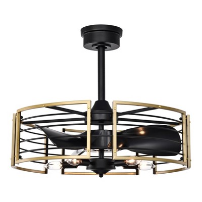 Warehouse Of Tiffany Veit 24" Matte Gold Cage Design Fandelier with Remote Control