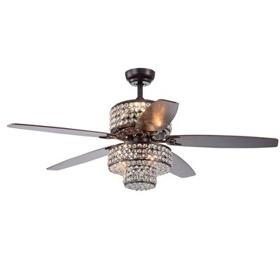 Warehouse Of Tiffany Proshta 3-Light Crystal 5-Blade Rustic Bronze Ceiling Fan with Remote Control
