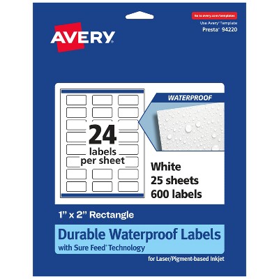 Avery Durable Waterproof Rectangle Labels with Sure Feed, 1" x 2"