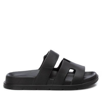 Sweetin Black Strappy Flat Slip On Sandals