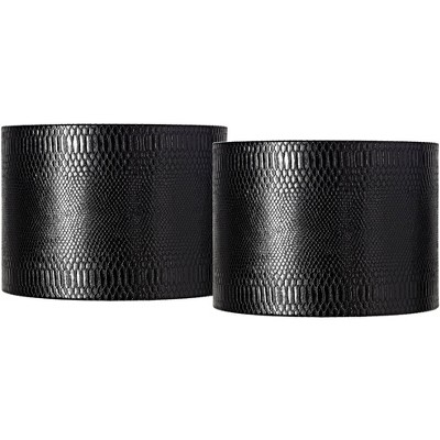 Springcrest Collection Set of 2 Hardback Drum Lamp Shades Black Medium 13" Top x 15" Bottom x 10" Slant Spider Replacement Harp and Finial Fitting