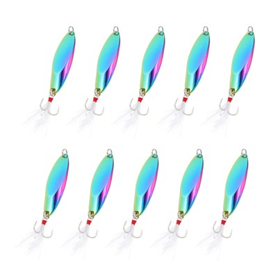 Unique Bargains Treble Hooks Metal Spinner Fishing Lures for Freshwater Saltwater Salmon 10 Pcs