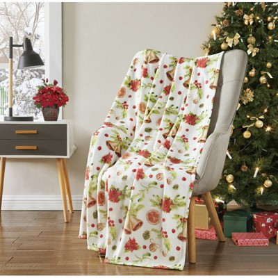 FIONECA Christmas Blanket with Ornaments Stars and Holly Soft Fleece Cozy Holiday Throw Blanket 30x40 inches