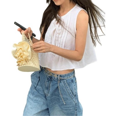 Coolmee Women's Bow Front Tie Tank Tops Pleated Babydoll Top Sleeveless Cute Coquette Shirt Summer Outfits