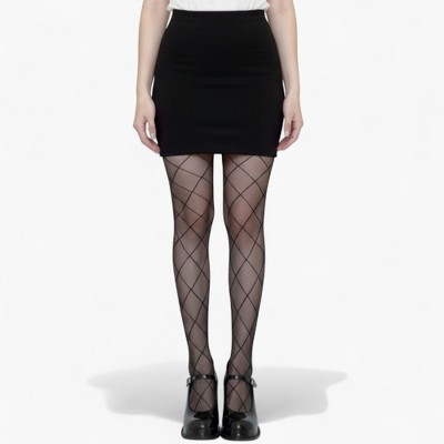 Anna-Kaci Women's Sheer Diamond Pattern Thigh High Stockings with Soft Stretch Fit - Black