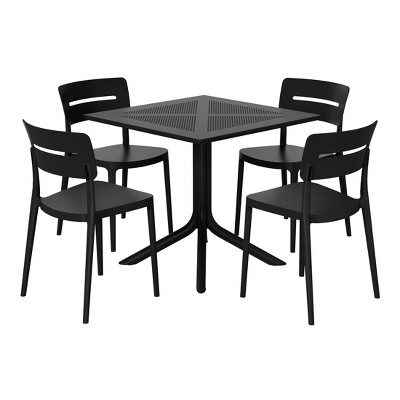 Flash Furniture All-Weather Resin Top Square Table & 4 Metal Chairs with Poly Resin Seats-Black