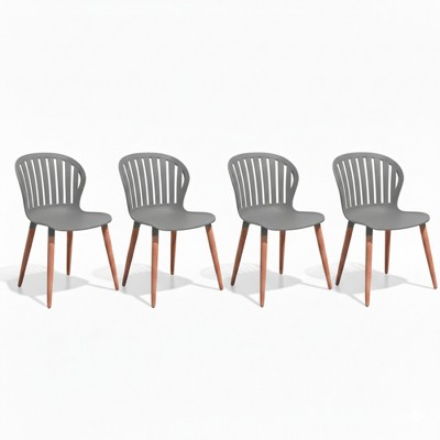 Amazonia 4-Piece Recycled Resin and Solid Wood legs Patio Dining Sidechair Set Grey