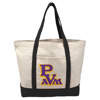 Prairie View AM University Primary Logo Canvas Tote Bag With External Pocket, Reusable Shoulder Bag for Shopping, School, Beach