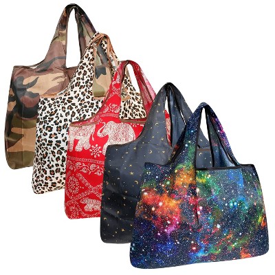 Wrapables Large Foldable Tote Nylon Reusable Grocery Bags, 5 Pack