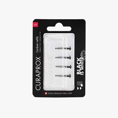 Curaprox Black is White Carbon S Interdental Brush Refills, 4-Pack for Small Spaces