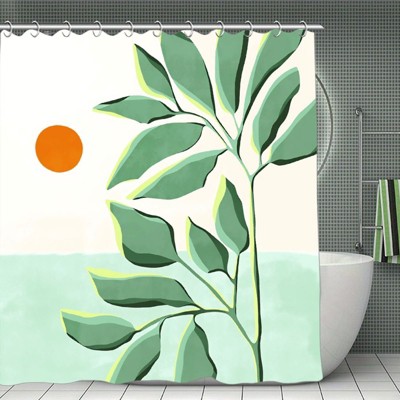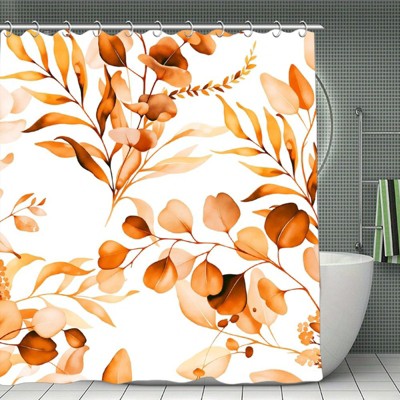 Orange Eucalyptus Leaf Shower Curtain, Orange Botanical Watercolor Plants Bathroom Curtain Bathtub Home Decor Waterproof Fabric 70.8x70.8Inch