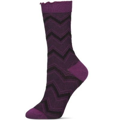 Memoi Women's Zig Zag Ruffle Top Cotton Blend Crew Sock