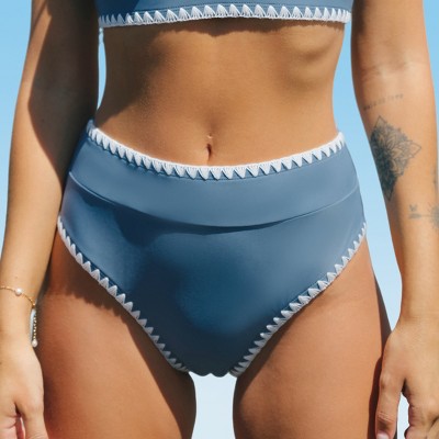 Women's Crochet Edge Low-Rise High Leg Cheeky Side-Tie Bikini Bottom - Wild Fable™