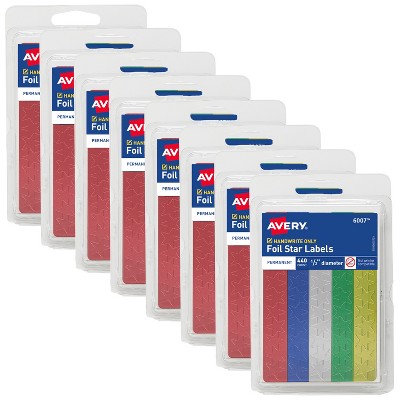 Avery Foil Star Labels, 1/2", Assorted Colors, Non-Printable, 8 Packs, 3,520 Star Stickers Total (21922)