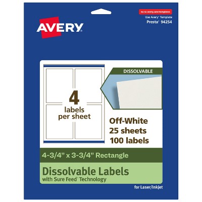 Avery Dissolvable Labels, 4.75" x 3.75" Rectangle