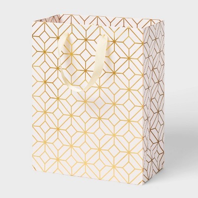 Small Foil Print Geo Patterned Wedding Gift Bag Ivory/Gold - Spritz™