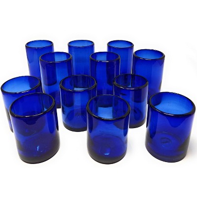 Dos Sueños Mexican Hand Blown Glassware Combo Set - Pure Cobalt Design Tumblers and Drinking Glasses