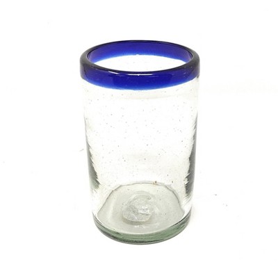 Dos Sueños Mexican Hand Blown Drinking Glasses - Blue Rim - 14oz - Single Glass