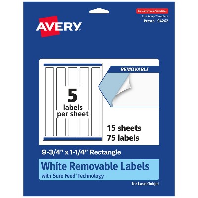 Avery Matte White Removable Rectangle Labels with Sure Feed Technology, Print-to-the-Edge, 9.75" x 1.25"