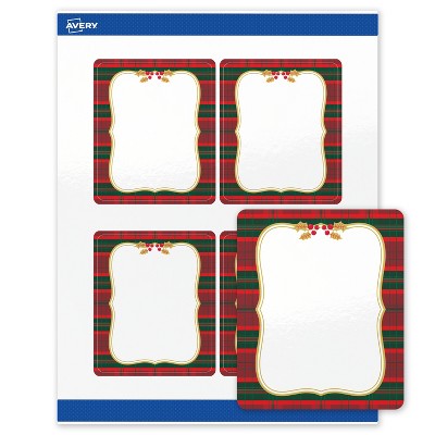 Avery Labels, 4" x 3-1/3", Gold-Red-Green Plaid, Glossy, 40ct
