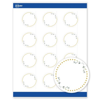 Avery 2" Round Labels, Matte, Green Florals w/ Gold Dots, 120ct