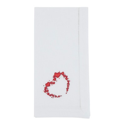 Saro Lifestyle Embroidered Heart Wreath Cotton Napkins (Set of 6) – Scattered Heart Circle Motif with Hemstitch Border, 20"x20", Red