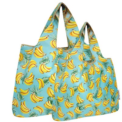 Wrapables Large & Small Foldable Nylon Reusable Shopping Bags (Set of 2), Bananas