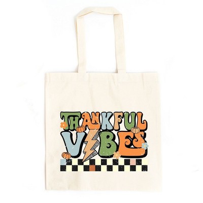 City Creek Prints Thankful Vibes Checkered Canvas Tote Bag - 15x16 - Natural
