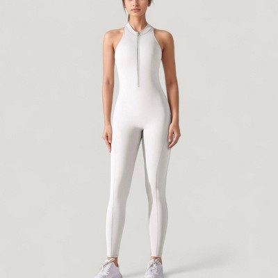 Anna-Kaci Active Women's Zip Front Activewear Romper with Open Back and Contoured Fit