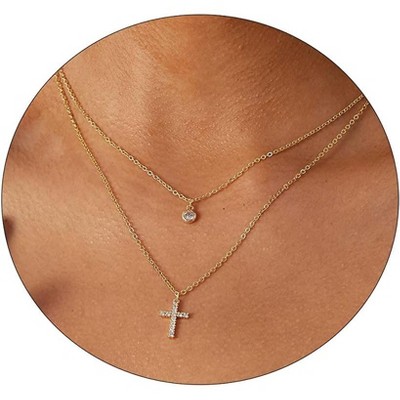 Cross Necklace 14K Plated Dainty Chain, Minimalist Faith Pendant Religious Prayer Jewelry Gift