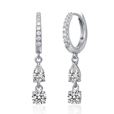 Elegant Two-Stone Dangle Huggie Earrings with a Modern Design for a Stylish and Sophisticated Look