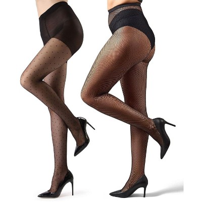 MeMoi 2 Pair Women’s Tights Bundle: Fishnet Tights & Sheer Polka-Dot Tights